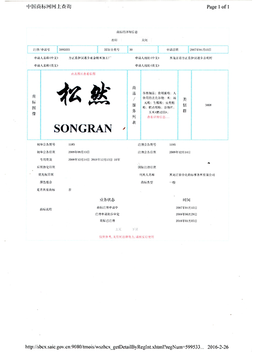 公司介紹 領(lǐng)導(dǎo)致辭 資質(zhì)榮譽(yù) 經(jīng)營(yíng)模式 品牌文化 您現(xiàn)在的位置:網(wǎng)站首頁(yè) > 松然米業(yè) > 資質(zhì)榮譽(yù) 松然商標(biāo)申請(qǐng)書 松然商標(biāo) 松然富硒檢測(cè)1 松然富硒檢測(cè)3 商標(biāo)轉(zhuǎn)讓證書 商標(biāo)注冊(cè)證 商標(biāo)注冊(cè)證 共15條記錄當(dāng)前為第2頁(yè)/共2頁(yè) 上一頁(yè)12下一頁(yè)